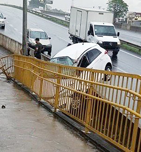 Carro cai em córrego da Av. Brasil após batida com...